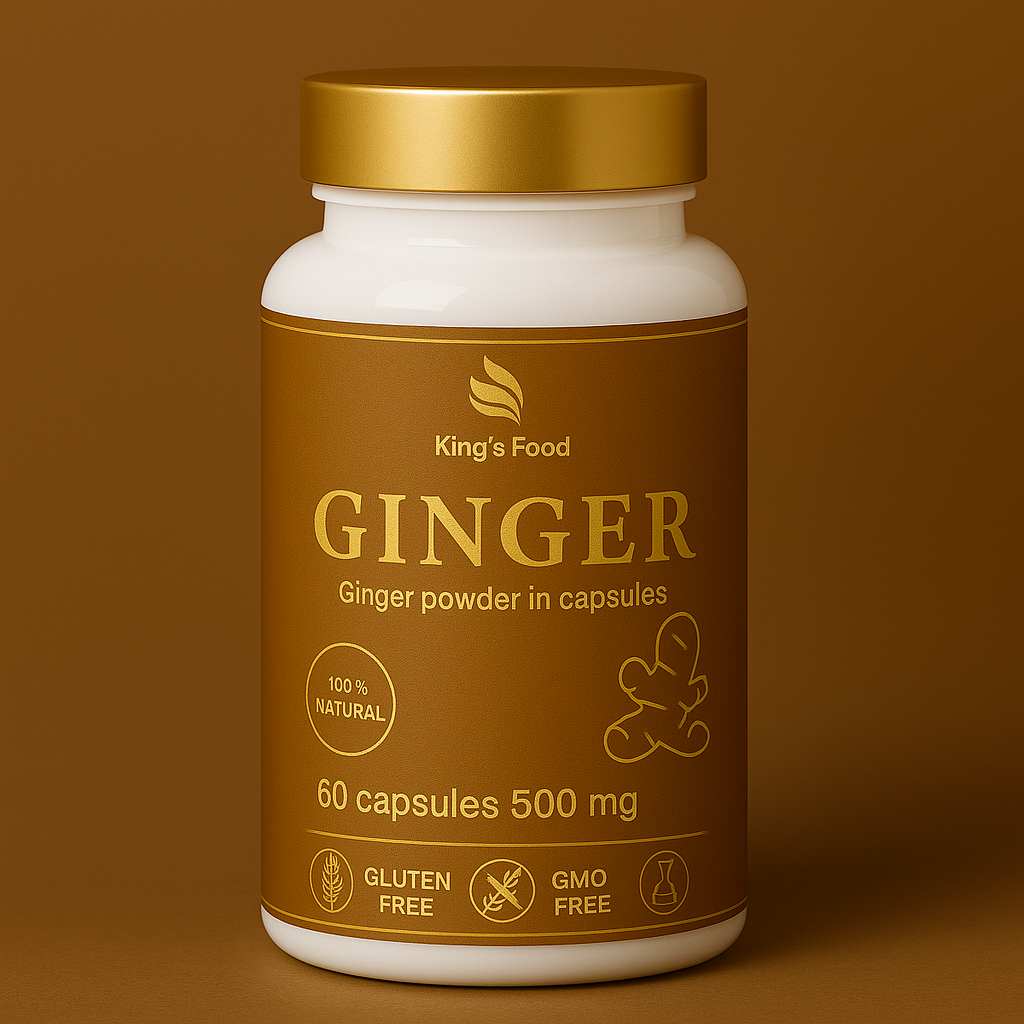 100% dried powdered ginger in a gelatin capsule (We filled the dried ground ginger (at 30-40 C) into a gelatin capsule.)