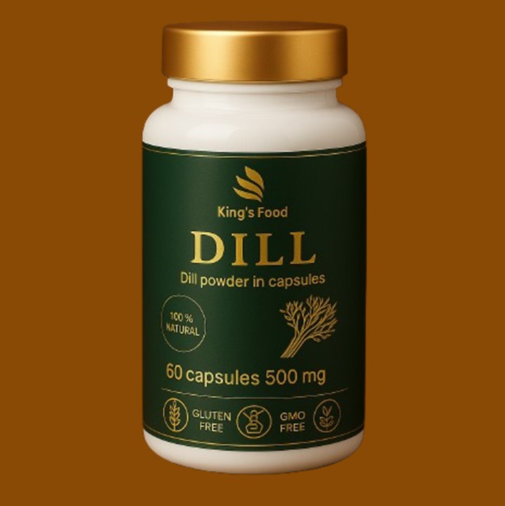 1 monthly dose of 1*60 pieces of 500 mg 100% dried dill powder in a gelatin capsule (The dried dill powder (at 30-40 C) was filled into a gelatin capsule.)